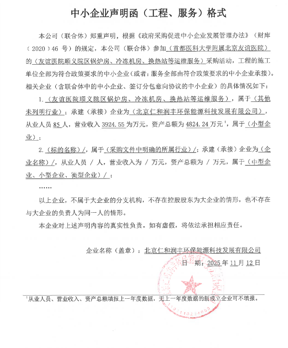 [公开]友谊医院顺义院区锅炉房、冷冻机房、换热站等运维服务中标公告